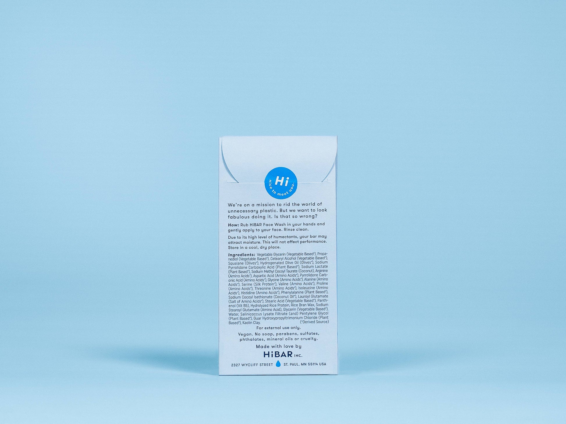 The unique shape of our solid face wash bar is designed to fit comfortably in your hand for easy use. But don’t be fooled by the compact size—each HiBAR face wash bar lasts as long as one full bottle of liquid face wash.